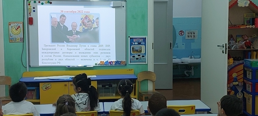 В нашем детском саду ,"Ивушка" 2 корпус, прошел тематический день, посвященный важному историческому событию — воссоединению Донбасса с Россией. Целью этого мероприятия было в доступной для детей форме рассказать о дружбе, единстве и богатстве нашей большой страны, частью которой стали новые регионы. С детьми были проведены беседы о России, ее символах, о том, что наша Родина — это страна, открытая для мира и добра. Мы акцентировали внимание на таких ценностях, как взаимопомощь, поддержка и крепкая дружба между людьми разных национальностей.Проведение таких мероприятий помогает воспитывать в детях чувство патриотизма, гордости за свою страну, уважение к ее истории и традициям.
