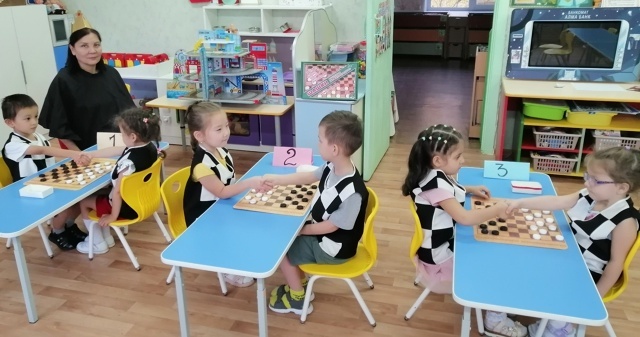 В гости приходила Шашечная Королева, которая рассказала о важности этой игры, напомнила детям правила честного боя. Игра в шашки помогает активизировать мыслительную деятельность, тренировать логическое мышление и память, наблюдательность, находчивость, смекалку.