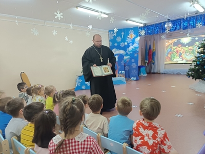 В рамках сотрудничества с Собором Преображения Господня и реализации программы духовно-нравственного и гражданско-патриотического воспитания в нашем детском саду состоялась особая, тёплая встреча. В гости к нашим воспитанникам пришёл отец Сергий.